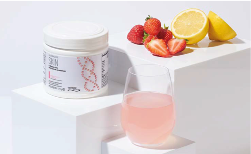 Una bevanda di bellezza al gusto di fragola e limone, ad alto contenuto di vitamine e minerali che contribuiscono al benessere della pelle, capelli e unghie. Contiene anche peptidi del collagene di alta qualità, chiamati Verisol® P, la cui capacità di migliorare l’elasticità della pelle e ridurre le rughe degli occhi dopo quattro settimane è stata scientificamente dimostrata.